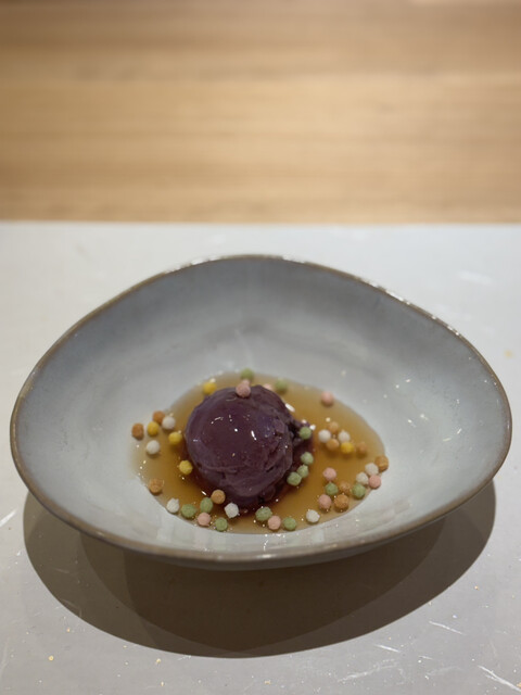 逸品料理のかんぱち胡麻仕立てやえんがわのジュレソースは、香りや温度、食感の違いが際立ち、コースにリズムを与えてくれます。