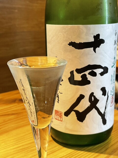 日本酒は全国47都道府県の銘酒が揃い、「雨後の月」は透明感ある旨味とキレの良さが牡蠣と好相性。希少な「十四代」も用意され、日本酒好きにはたまらないラインナップ。