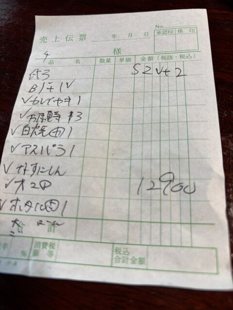 二階の窓際の座敷席に通されました。何と階段下の椅子ではないスペースに座って一杯やってる人が!お馴染みさんですね。こんな狭いスペースに小皿を並べて…そこまでしてこの店で飲みたいんだ!何とも微笑ましい。