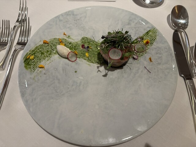 ディナーでも、ワインを料理ごとに、種類を変えて…美しいお皿は写真にとどめたものの、記憶が飛びぎみでした(笑)