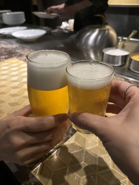 シェフの華麗なパフォーマンスを楽しみながら乾杯。