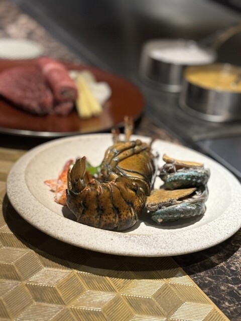 目の前にA5黒毛和牛フィレとやオマールエビ、鮑が並べられワクワクが止まりません!