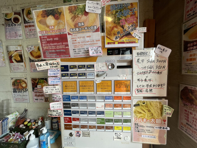 食券機の前でボタン探している人がいますが、ポップを見て食べたいラーメンがあったら、同じ料金の限定ボタンを押して食券を渡すときに食べたいラーメンを伝えてください。