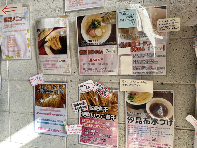 前に行ったときは中華そばと麻婆まぜそばとかのラインナップでしたが、メニューもかなり増え、日々メニューが変化するのでメニューのラインナップはフェイスブック随時公開しているという感じ