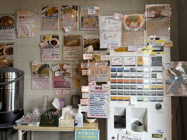ただやはり胡椒や一味などの調味料は給水機の横に置かれており、カウンターには設置されていません。(まぁ基本かける必要ないとは思いますが、必要とする人がいると超面倒なんだと思います。銭湯の椅子を元の位置に戻さない人が居るように使いっぱなしの人が居ると対応が難しいと思う)