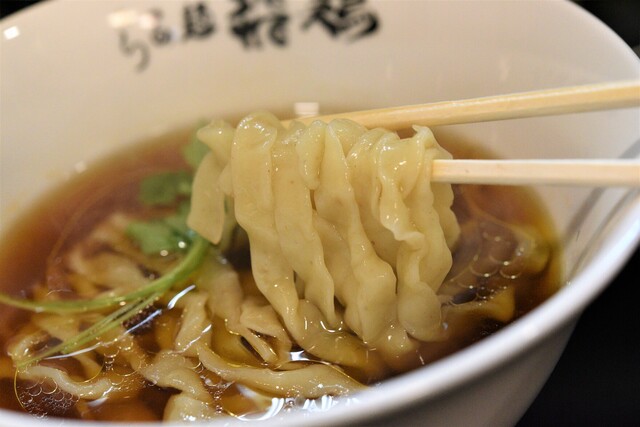 小麦ムンムンのしなやか麺を鶏のプールに半分程浸して