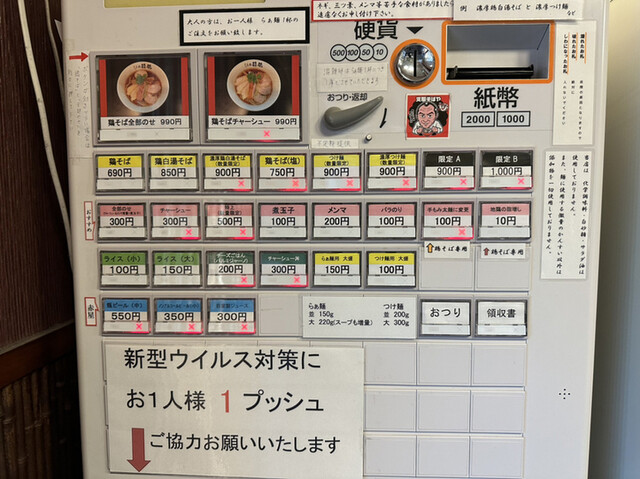 やっとお店に入り食券機に向い限定のラーメンと追加のチャーシューをゲット
