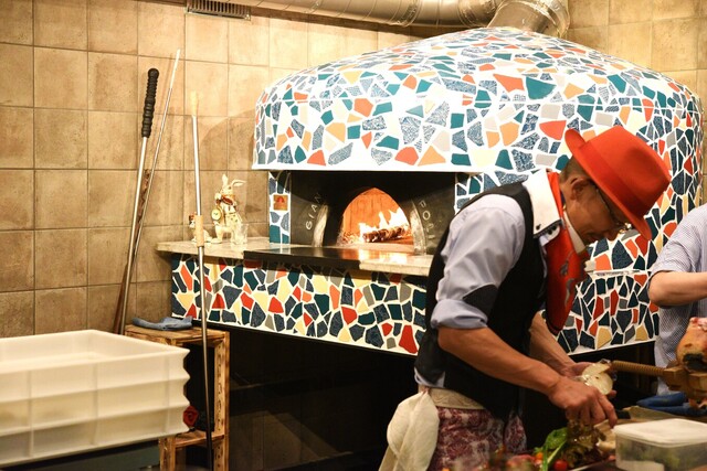 店内には生ハムの原木がドーンと置いてあってカラフルなピザ窯等がおしゃれなので写真を撮らせてもらっていたら店長さんが
