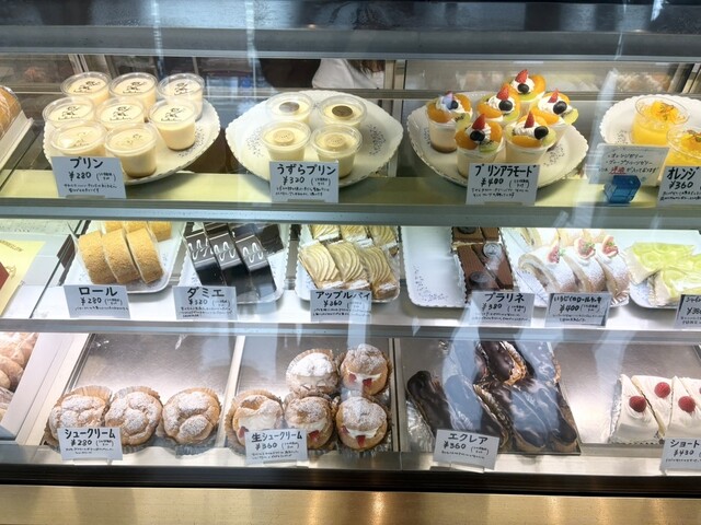 本店よりコンパクトな店内ですが、ショーケースにはいつもの大好きなケーキたちがずらりと並んでいてワクワクします。