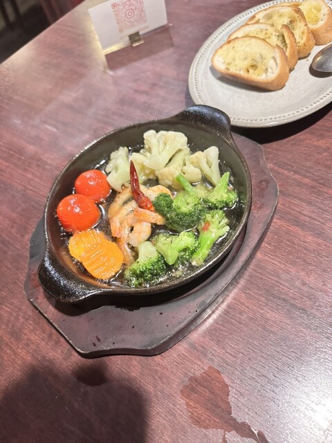 ■ エビと野菜のアヒージョ + ガーリックバケット
