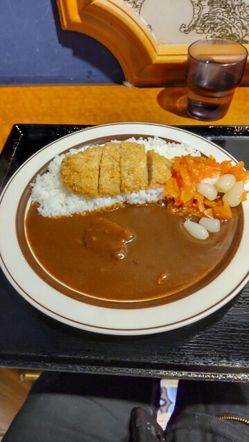 人気のカツカレーを食べる