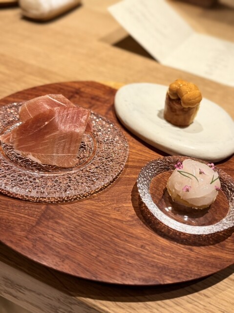 ウニの濃厚さ、ピキージョの香りが渾然一体。3皿だけでもう夢心地…この先が楽しみで仕方ない!