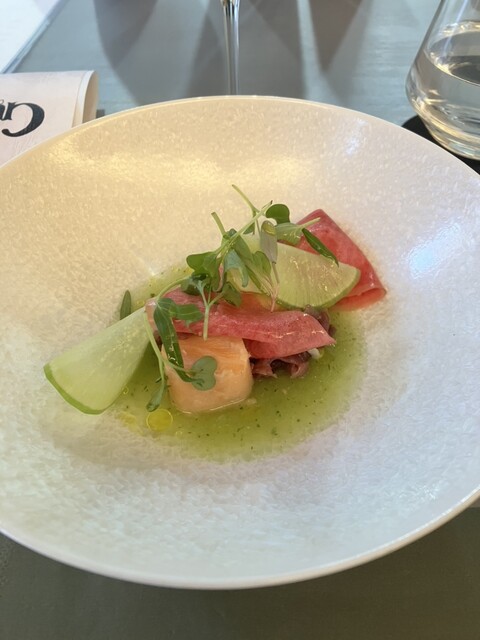 最初のお料理のマスカットの白和に感心しながら、先ずは、ビールで、乾杯。 染みる。