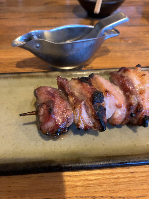 だいだい、お通しのガツ刺しからして、おいしいし、どの串も、各々を活かした絶妙な火入れ加減。 しろ、レバー、つくね、みんな、いい。