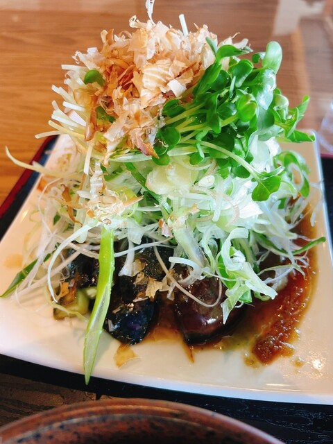 昨日の瑞生庵で食べたコラボおうどん!めちゃめちゃ美味しかったなぁ〜!今日もオクラとろろ!!と思いましたが、気分は生姜焼きなす!心奪われました
