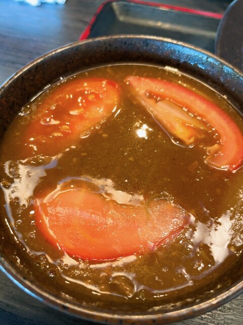 ️でのカレーは今年の2月のチーズカレーうどんパン以来で、カレーうどんは初めて行った21年9月8日に食べ、で満を持してのカレーつけうどん‼️ほんと言うとぽんぽんが大丈夫なら、肉汁つけうどんも白茄子坦々も食べたかったですけど、私のお腹は少ししか食べられないやわなお腹…