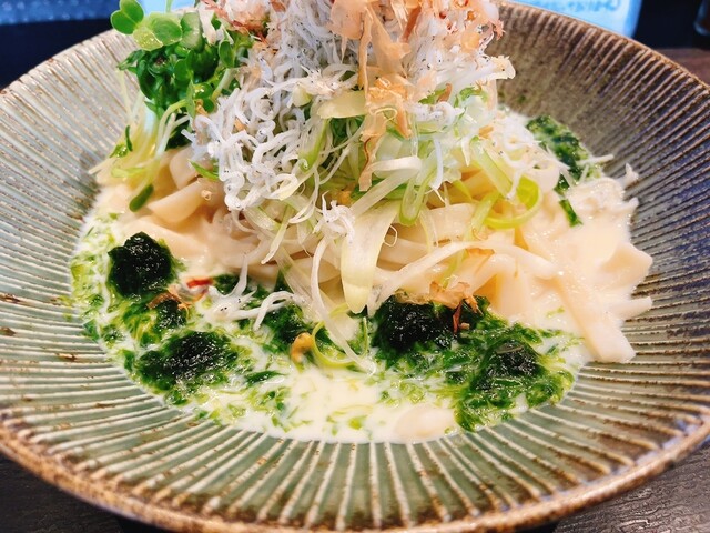 しらすがうまそっ!食べると生海苔と鰹節と豆乳の優しさ!あ〜あの顔で…いやまじ旨い!ですね!