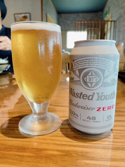 開店️に11:00にIN!ノンアルと去年も食べた間違いない味のジャークチキン!あと、うどんにはマスターにマイマザー(ワガママ)言ってトマト乗せてもらいました