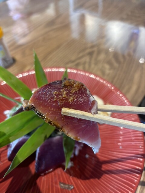 週末散歩してから美里町串焼きBuBu-ToNでランチしてきました。マスターのインスタとま鰹があるとの告知。K野さんの食べたかけうどんもつ煮も調子乗っちゃって注文しました。
