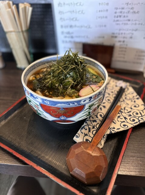 渋い男はチャーシューかけうどん!で私は今日からのメニュー「生海苔としらすの豆乳ぶっかけおうどん」を注文❣️しばし楽しく歓談はやっぱり落ち着きますね