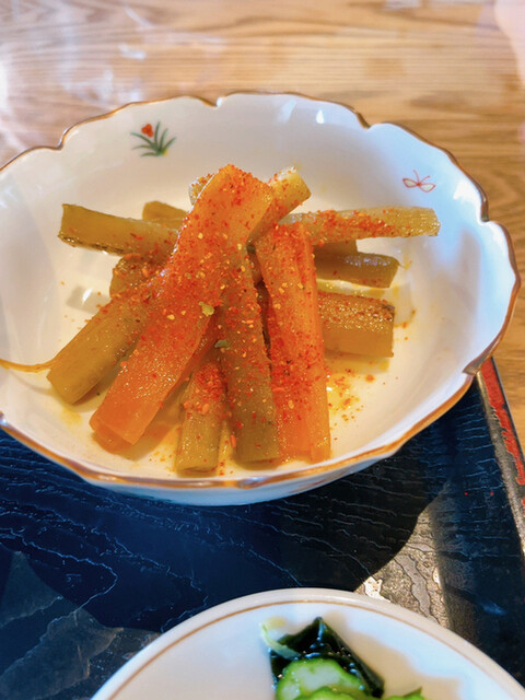 今日は少しゆったり⁉︎マスターとも談笑しながら、注文は食べたかった「辛ねぎ胡麻汁つけおうどん自家製蕗味噌付き」❣️