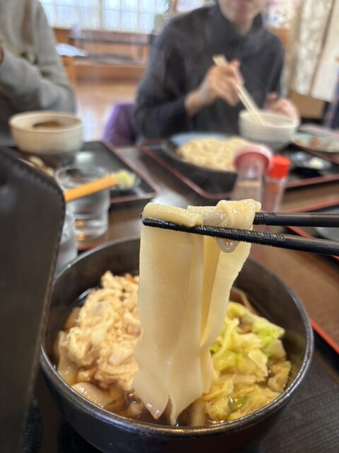 娘の車使って行きましたぁ。店に入ると農作業の合間のお父様達が楽しそう!奥様に、猪豚の肉汁うどんオーダーしてスマホ見てると背後から、声かけいただきました!