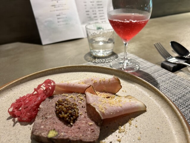 たけすみホヤのフリット、牛の生ハムの前菜からメインからデザートまで見た目からのイメージとのギャップに驚き、添えられた自家製カンパーニュのもっちり感もビックリ