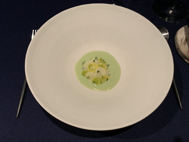 初めて伺いました。魚介フレンチで有名なお店ですが、お魚の美味しさと同じくらい、野菜やハーブの美味しさ、風味の豊かさが印象に残りました。13皿のコースでしたが、一皿一皿工夫が凝らされておりどれもはっきりと思い出せるくらい個性がありました。