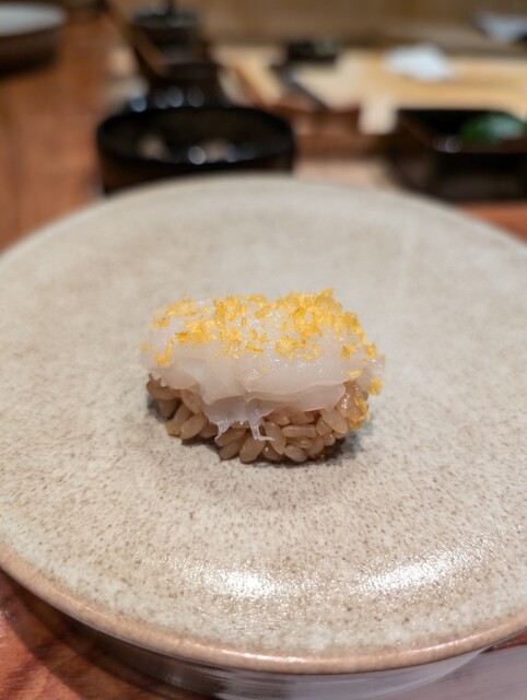 そして、鮨の味と仕事だけではなくカウンター数組だけという空間において大将と職人皆さんの醸し出す優しい配慮あるサービスがとても暖かく、うらおにかいさんは居心地そのものが至福です。やはり鮨はただ高価で敷居高ければ良いというものではなく、一連を味わい、そして楽しめるかどうかが大切だなと感じます。