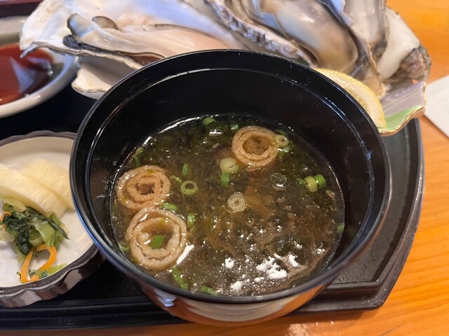 焼牡蠣、牡蠣フライ、牡蠣の酢の物?、造り盛合せなどなど。わたし的には、米も重要でご飯も旨い。(*^^*)v なお、穴子もおすすめらしい。