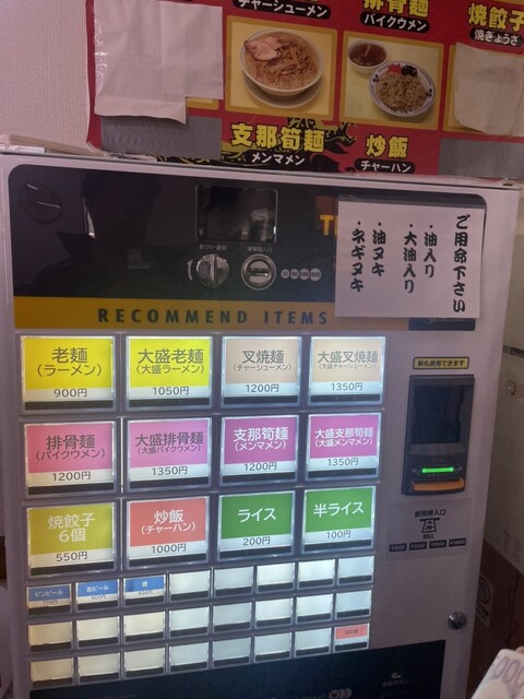 老麺(ラーメン)900円、炒飯1,000円の食券を購入。見た目はこってりだが、スープは真逆のあっさりで、麺は極太。杭州飯店とはまた違った背脂ラーメンの代表格であると思わせる最高の一杯。