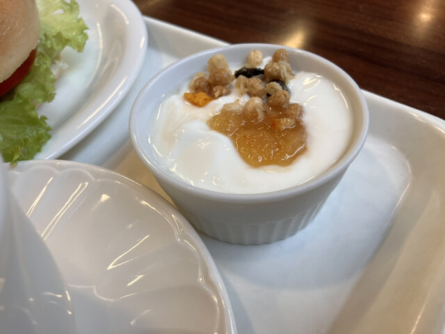 ベーグルサンド、ブレンドコーヒーを単品注文。朝の時間だったからか、ヨーグルトはサービスでした