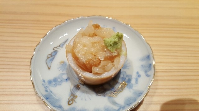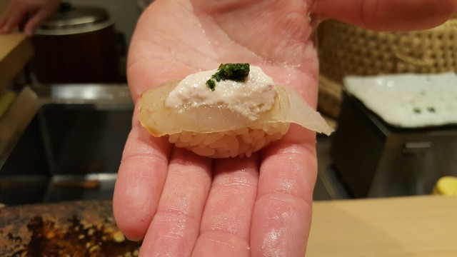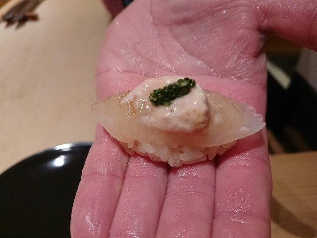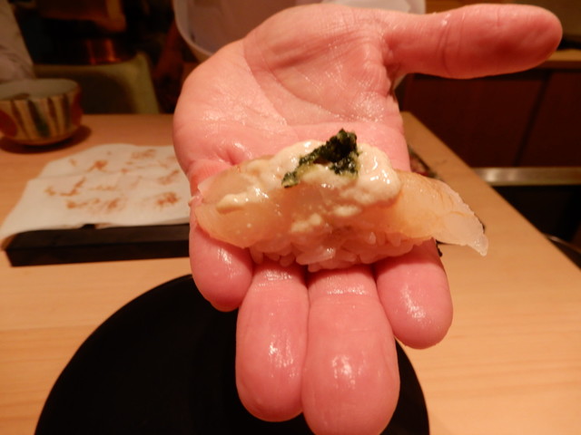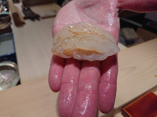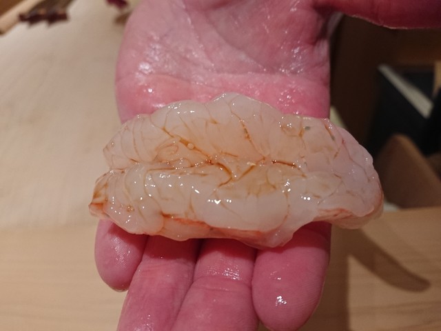 甘味が溢れ、海老味噌の旨味も素晴らしく、今年食べた中で一番美味しい車海老のにぎりでした。