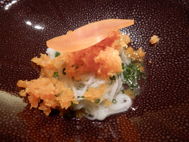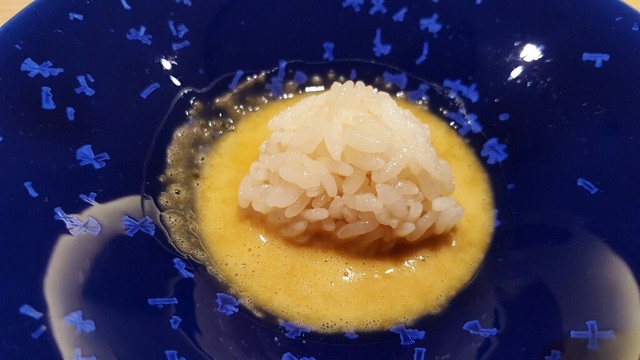 米の旨味と甘味が濃く味わえ、上品な塩味で素晴らしい旨味のカラスミとの一体感が素晴らしかった。