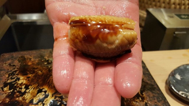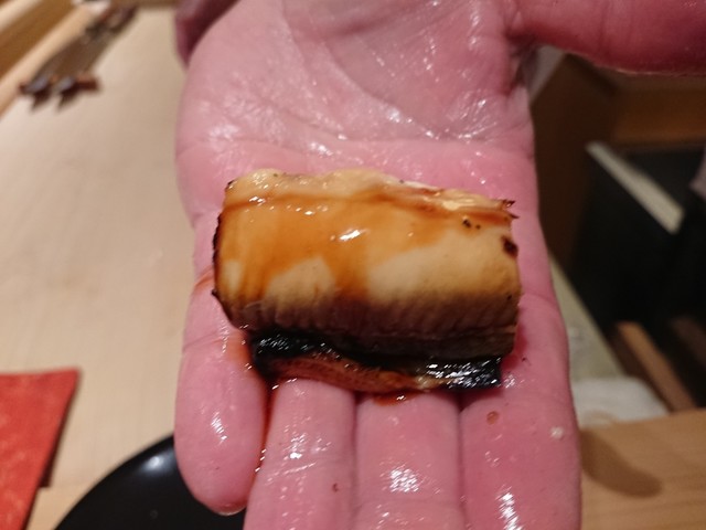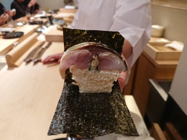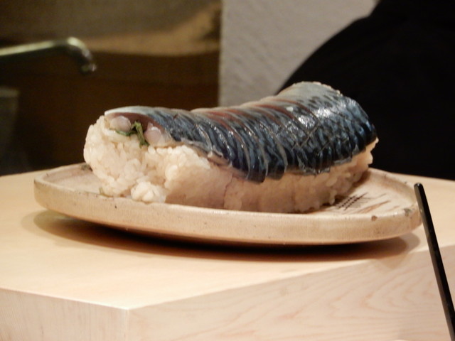かなり前から穴子、ウニ、カワハギなど手渡ししていましたが、この鯖の棒寿司で手渡しポーズが世間に広がったような気がします。