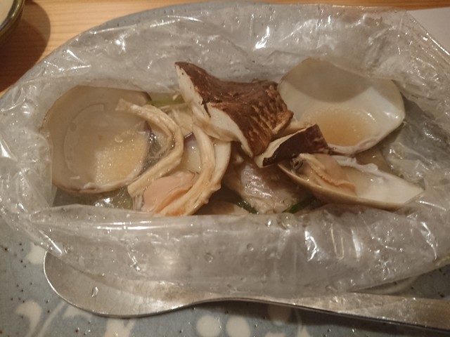 吉田さんと会話が弾んでメニューの説明を伺っていませんが、以前と変わっていなければイタリア製の耐熱ビニールに入れて調理されています。