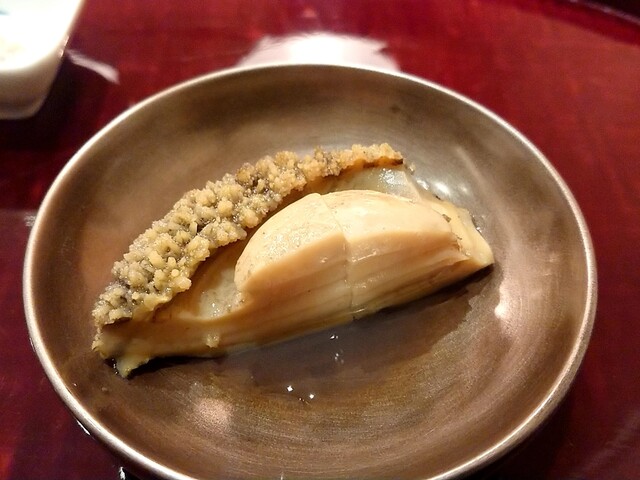 鮑の肝ソースが一緒に提供され、肝ソースをつけながら頂きました。