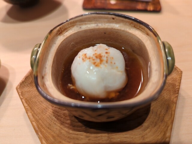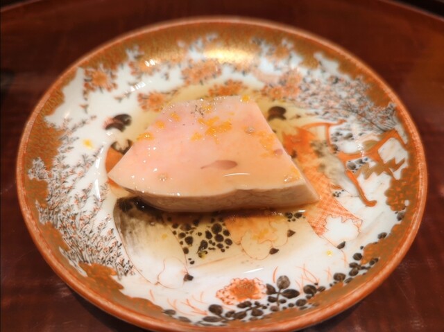 すっぽんの出汁で仕込まれた煮凝りと鹿児島県産のカイワレ大根を乗せて提供されました。