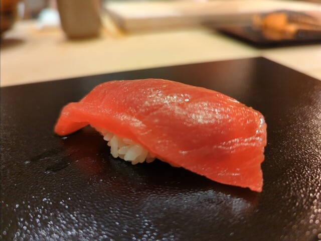 マグロの出回りが悪い夏場ということで、冷凍のマグロを使うお鮨屋さんが多い中、【良月】さんではマグロの香りと旨味が堪能することができました。