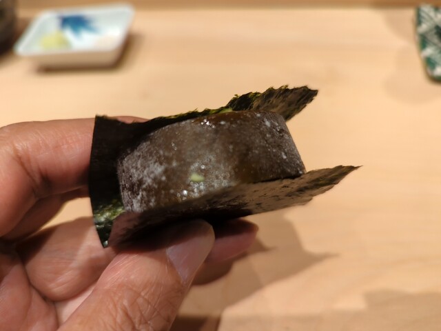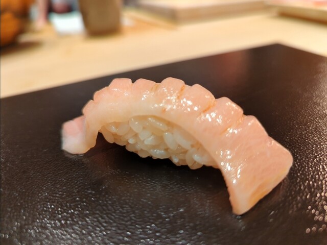 ネタの美味しさを考えると5点満点をつけたいと思いましたが、シャリの余韻の風味がいつもと違うように感じ、私には少し気になる風味でした。