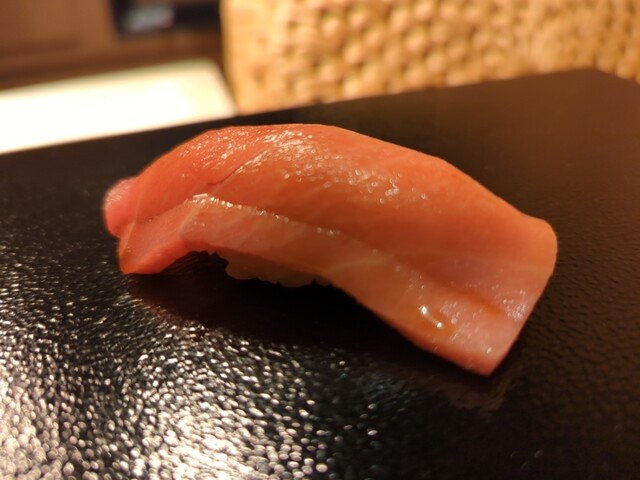 昆布出汁ベースの醤油に潜らせて、米酢のシャリで握られました。