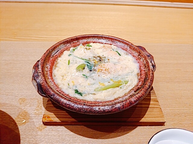 一転、濃厚な鍋物。生臭くならずねっとりとした旨味を引き出していて美味しい。火傷するほど熱々ですが、白子は熱を入れても固くならず嬉しいです。