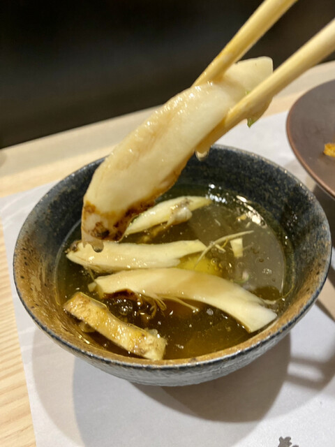 つけ汁に入った松茸も、噛み締めるとジュワッと濃縮された松茸の旨みが溢れてたまらん!