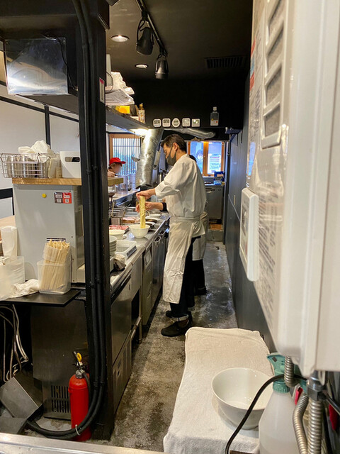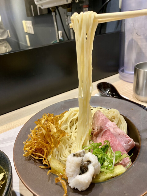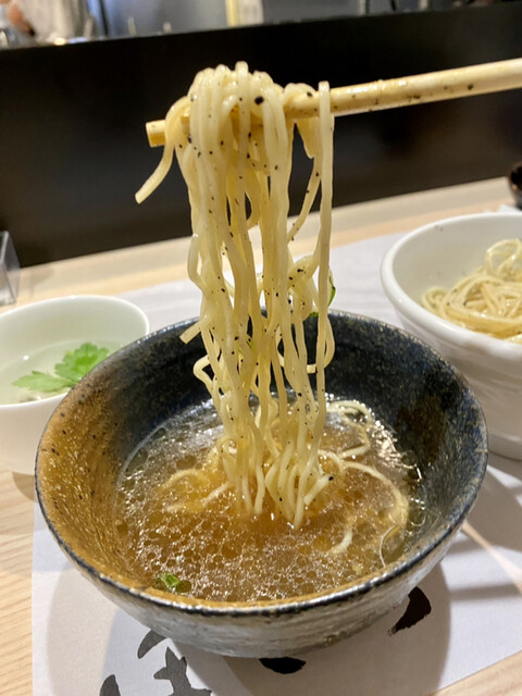 冷や締めのストレート細麺はツルツルで、気持ちの良い啜り心地。