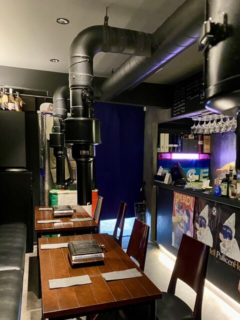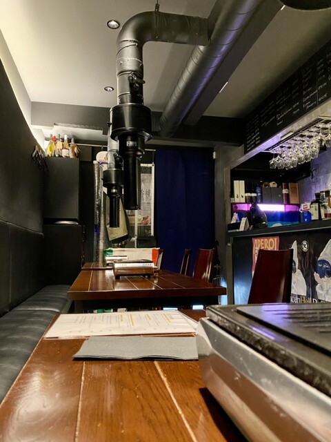 そんなひっそりとした佇まいのお店に一歩足を踏み入れてみると黒を基調とした縦長の空間に4人掛けのテーブル席が3卓並んでいて左側のカウンター越しに厨房がある間取り。