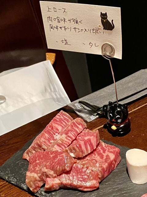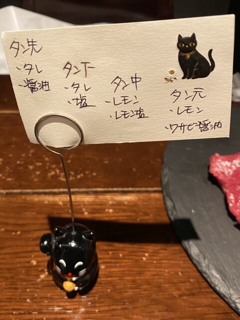 細長の黒いプレートにはタン先→タン下→タン中→タン元の順に盛り付けられていて、タン先から順番にいただいていきます。