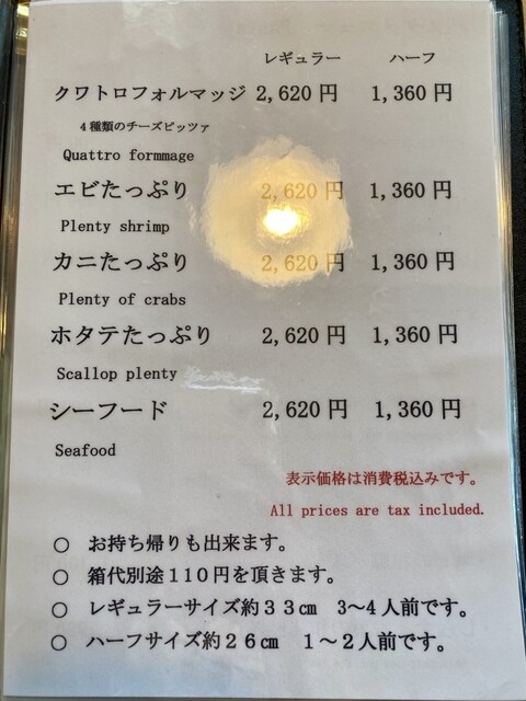 「松茸ピザ(ハーフ)@3,800円」