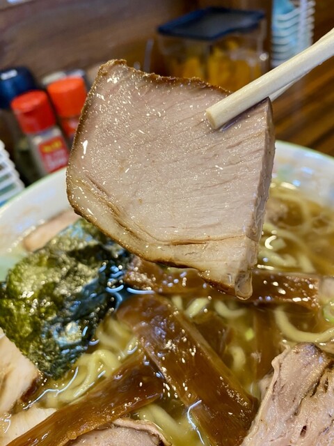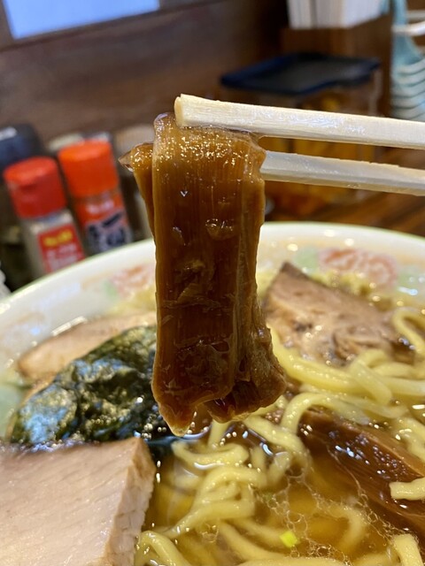 麺は角が立った太麺で、旨みの油を纏ってツルッツル。