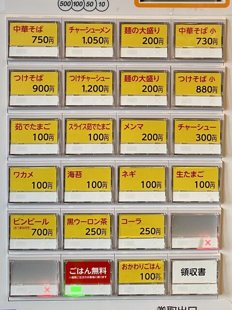 「中華そば@750円」で「麺大盛り@200円」にするのが麺をたくさん楽しめて個人的にはベストな注文。
