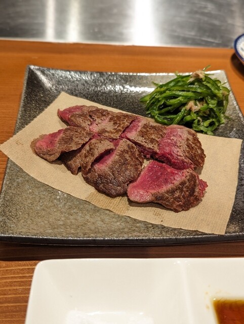 コース・メニューは2500円に特別メニューのブルーレアステーキ牛刺し風500円をプラスして3000円。